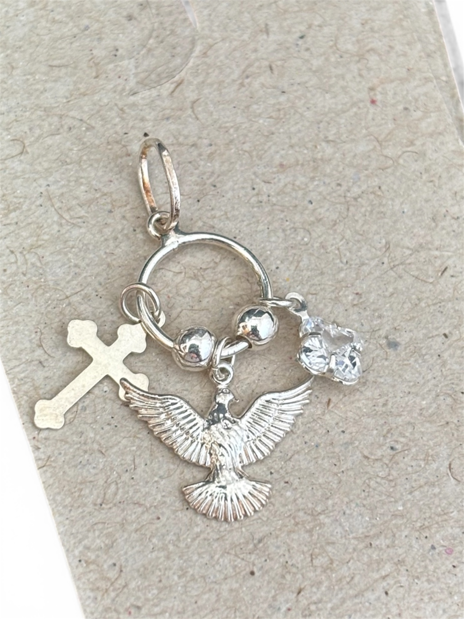 Pingente Cruz, Flor e Espírito Santo Prata 925.