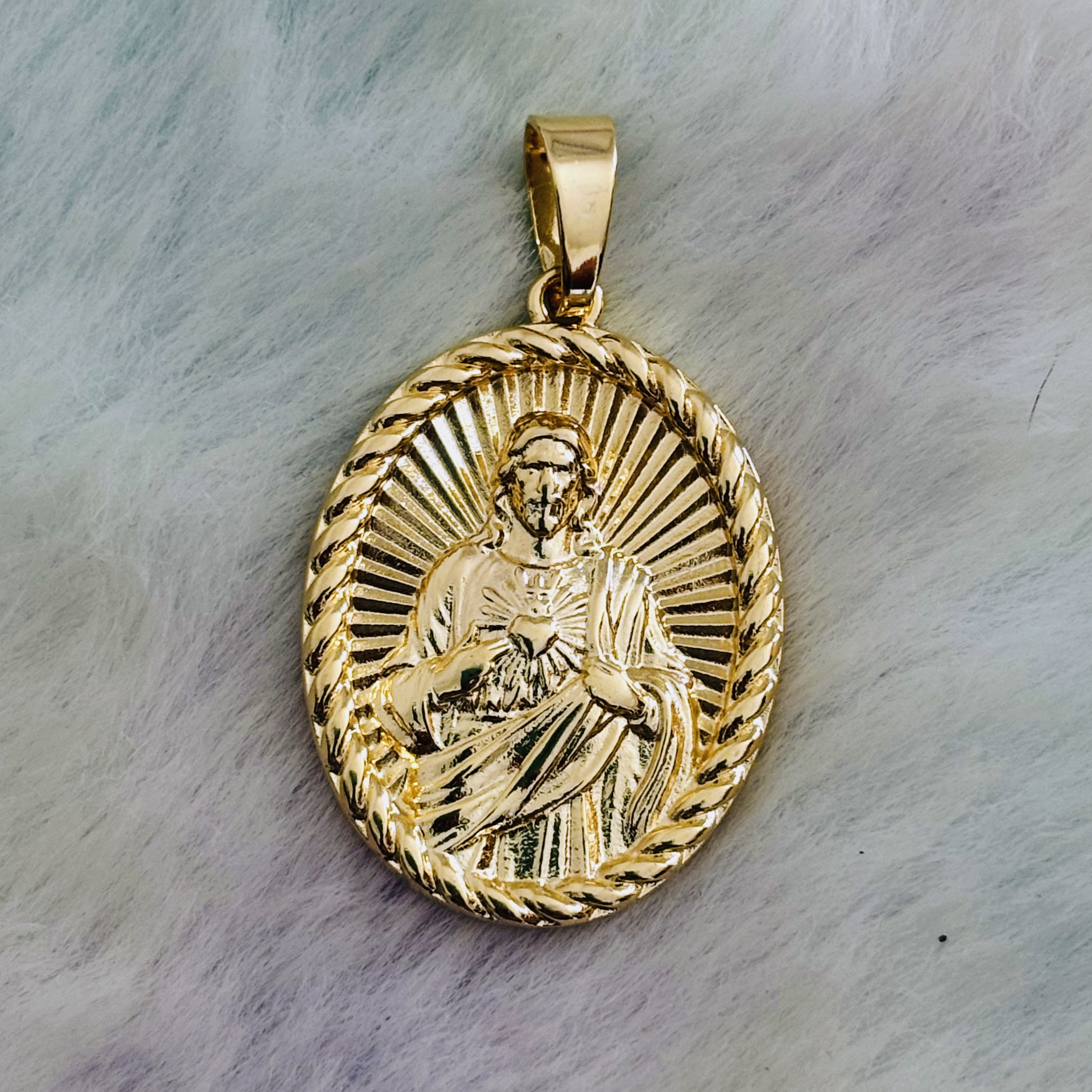 Pingente Masculino Sagrado Coração de Jesus Banho Ouro Amarelo com um ano de garantia.