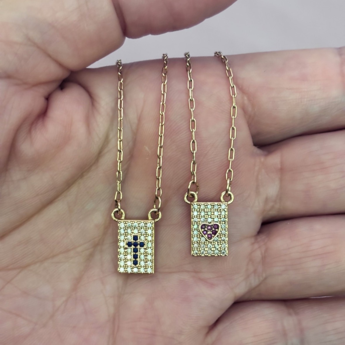 Escapulário Coração e Cruz Sacra Joias Banho de Ouro Amarelo